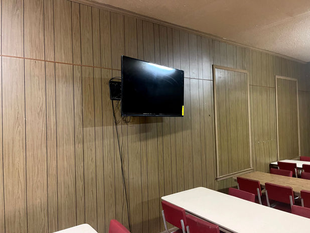 Meeting area for workshops. The area also has a Podium and Smart TV with HDMI connection. This area can hold up to 100 people.